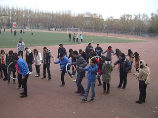 下午1点半,活动正式开始。由各个部门部员代表带队,大家参加了“解手链”、“乒乓接力赛”、“心心相印”、“呼啦圈过山车”、“海底捞月”等训练游戏。首先是活动主持人介绍游戏规则,随后,参与的同学们有序地进行了这几个游戏。在不同类型的训练中,队员们相互讨论,由陌生到默契,成功的完成了一个又一个惊险的任务,大家都沉浸在紧张而快乐的气氛中。整个素质拓展进行的非常顺利。在素质拓展训练结束后,全体人员合影留念,留下了大家最珍贵的回忆。